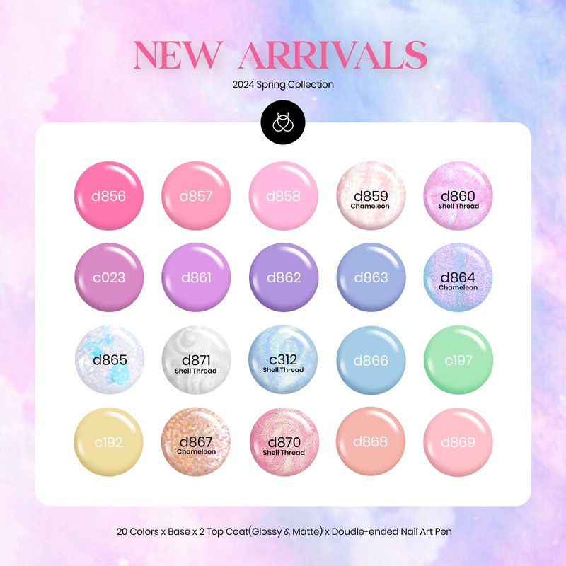 Beetles 24Pcs Gel Nail Polish Set, Summer Pastel Pink Blue Pearl Shimmer Chameleon Purple Green Colors 2024 Spring Summer Gel Polish Kit, 3Pcs Base Gel Top Coat and Double-ended Brush Soak off UV Gel