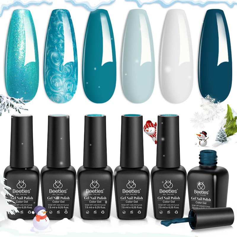 - š©µćGlitter Blue Gel Nail Polishć: The theme of this 6-color gel is "Mermaid Treasures" and includes Navy Blue, Glitter Blue,Baby-Blue, Light Turquoise, Sky Blue, Royal Blue, White. Like a mermaid seeking treasure in the distant sea.