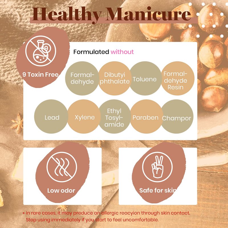 · 9 Toxin Free formula, easy and safe to apply.