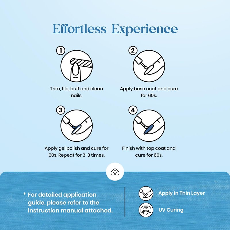 4. Top Coat: Finish off with a layer of top coat, cure under UV/LED lamp for 90-120 seconds.