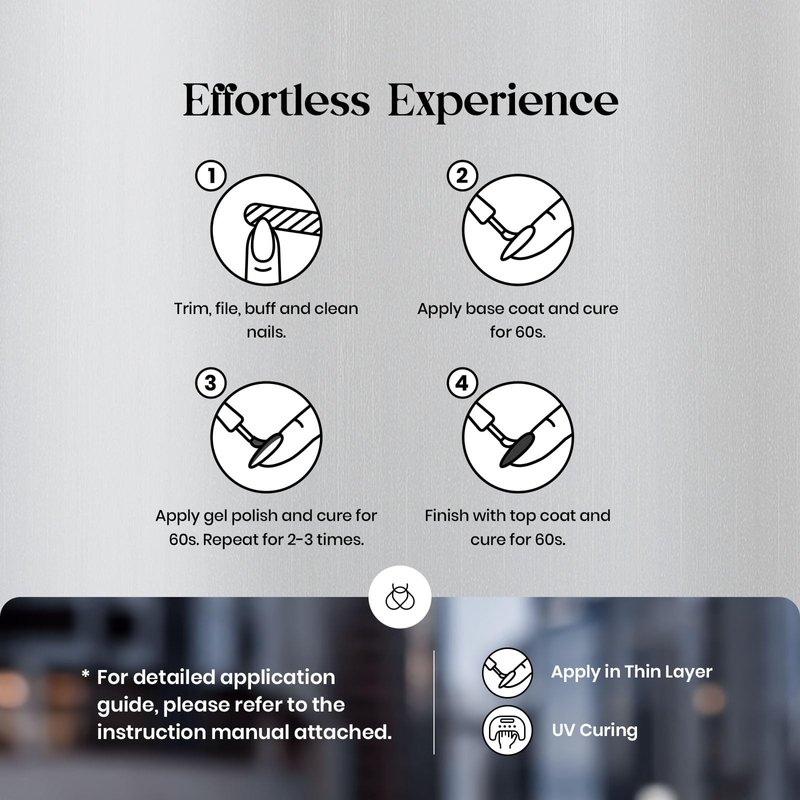 - 【REMINDER】: Please read the Instruction or Products Description for more details. Only used for nails and non-direct contact with the skin. Wash immediately if contact occurs. Keep the products away from pregnant individuals and children. (PLEASE NOTE: We strive to make our digital color swatches as accurate as possible to the actual product color, but due to different monitor settings and electronic devices, colors may differ slightly.)