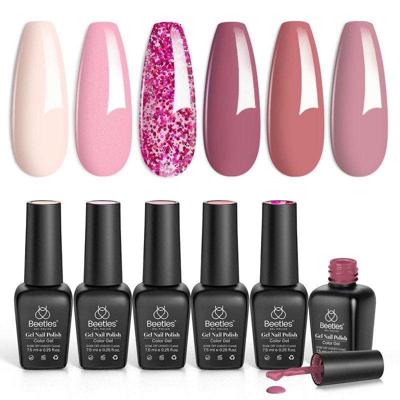 Beetles Gel Nail Polish Set 6 Colors Pink Confetti Collection Classic Nude Pink Glitter Pastel Gel Nail Polish Set Soak Off Uv Led Gel Polish Nail Art Varnish Manicure Kit Gift
