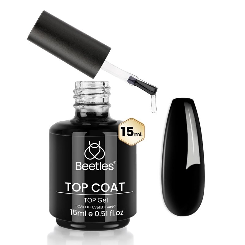 - Beetles No Wipe Top Coat: Beetles offers 1pcs 15ml large capacity no wipe gel top coat. Long lasting for 21+ days with perfect shine. A flexible topcoat avoids nicks, chips, or smudges.