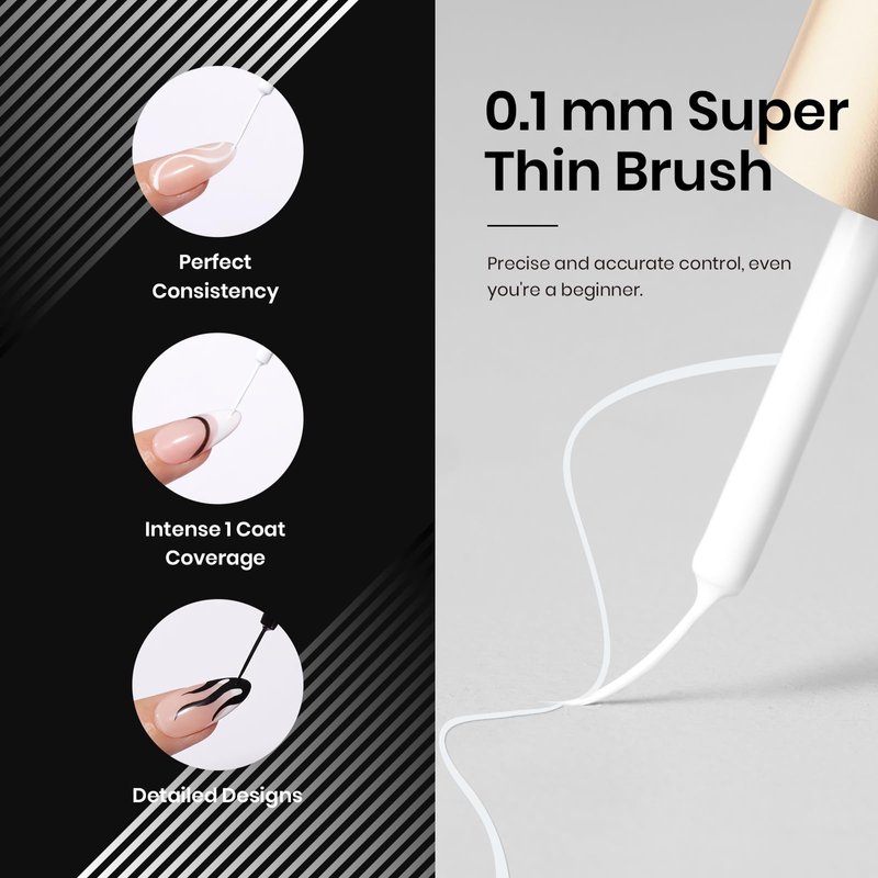 beetles Gel Polish Nail Art Liner Gel Polish Set- 2 Popular Black White Colors Nail Art Polish Gel Art Paint for Swirl Nails Built Thin Nail Art Brush in Gel Pens UV Soak off Gifts for Women