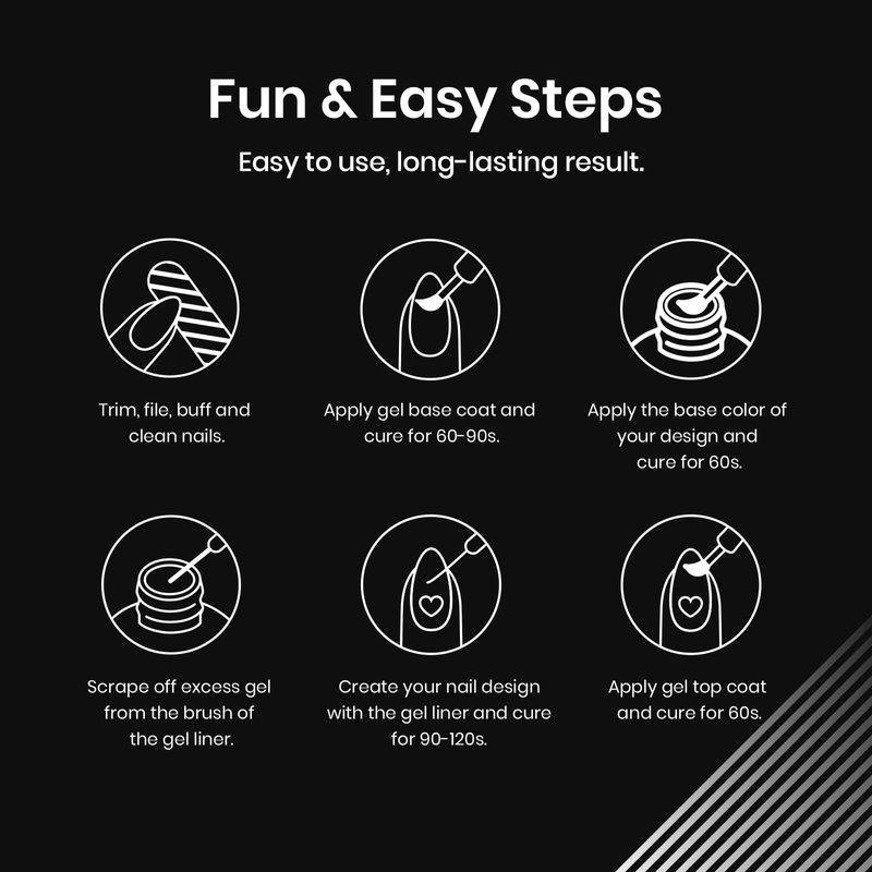- Gel Liner Nail Polish Application: Please scrape off excess gel from the liner brush before applying to prevent dripping gel during application. THIS IS GEL POLISH. IT MUST BE CURED USING AN LED/UV LAMP. It can also be given as a good gift.