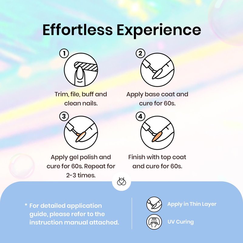 - 【Speed Curing with LED Nail Lamp】The pastel nail gel polish gift set need to be cured under LED Dryer Lamp. Base and Top coat required. Average for LED Lamp 60-120 secs. Only used for nail and Non-direct contact with the skin. Wash immediately if contact occurs. If you feel unwell, instantly stop using and seek medical attention. Keep the products away from the pregnant and the kids.