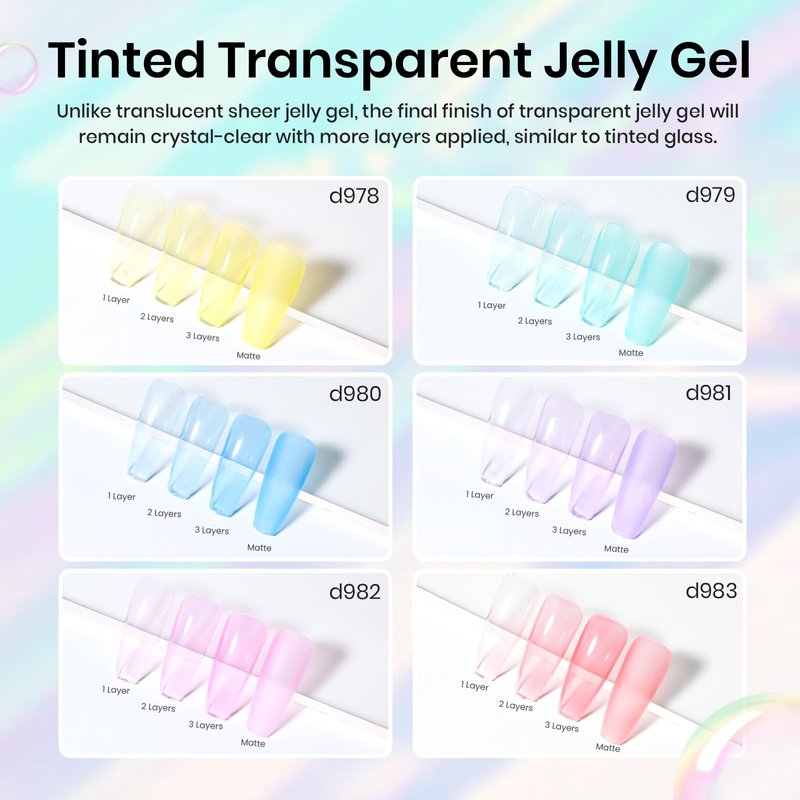 - 【New Trend in 2024】The jelly effect refers to a special polish texture, both transparent and syrupy. Inspired by MOST POPULAR GEL COLOR. Jelly gel polish has a coloured glass-like finish. Using the mermaid bubble beads to create more different nail effect.