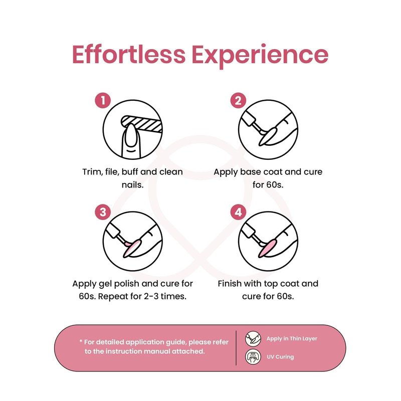 2. Base Coat: Apply thin base coat, cure under nail lamp for 60-90 seconds.