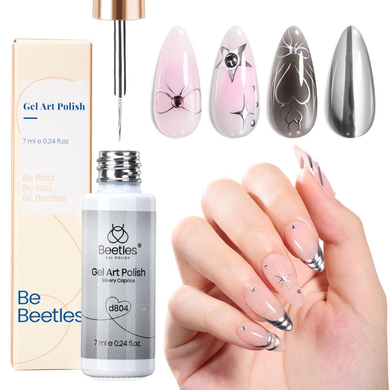 - 【French Tip Gel Polish】Beetles metallic silver nail polish perfect for those trendy squiggly lines bstract painting that are so popular now… also works perfect for adding a French line! Allowing you to have salon-quality nails at home for multiple seasons.