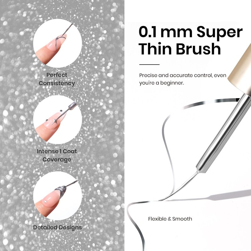 - 【3D Mirror Chrome Effect】Silver swirl painting liner nail art gel polish offers a mirror-like finish that gives nails a fashionable and futuristic appearance. The chrome effect reflects light and creates a high-shine, reflective surface on the nails.