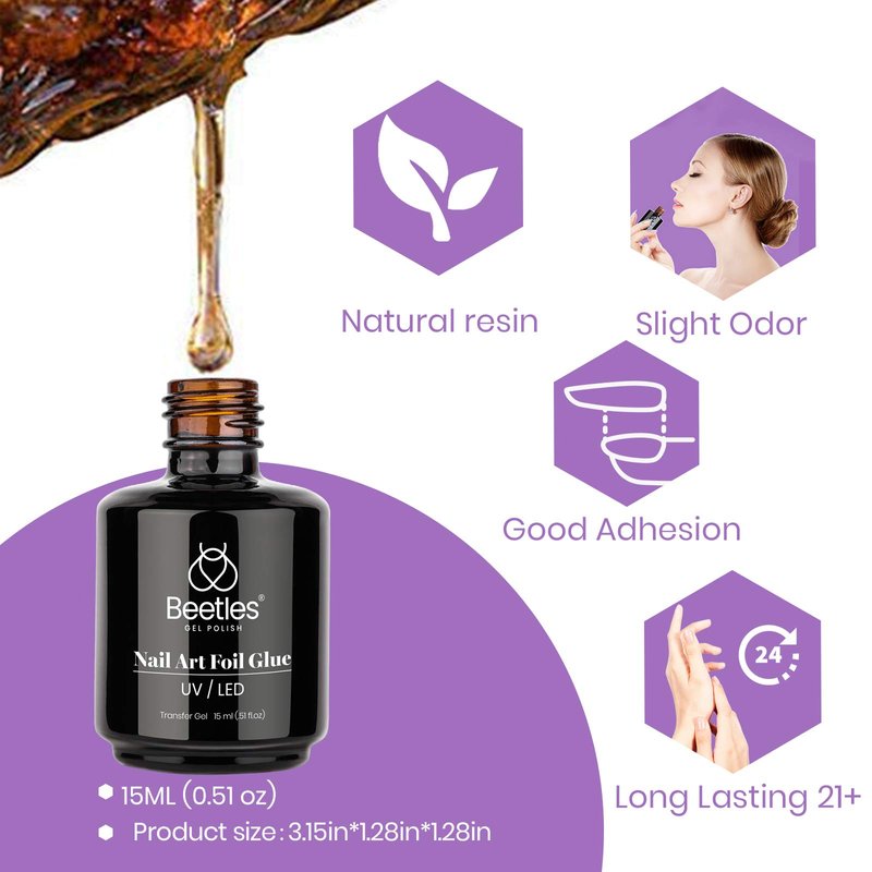 Beetles Nail Foil Glue Nail Art Foil Glue Gel for Foil Stickers Nail Glue Foil Transfer Gel 15ML Gel Nail Foil Transfer Glue Nail Art Manicure DIY LED Lamp Required Soak Off