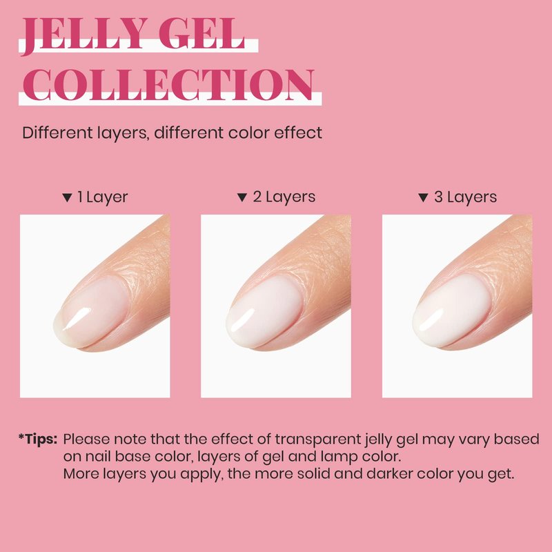 - All Season Gel Polish: Milky White jelly gel polish is essential for everyone! (color number: a732) 1 Pcs 15ml/0.5oz jelly gel nail polish. You'll be dizzy with delight wearing this sheer color gel. Jelly Gel Polish: Milky White Jelly;it is a semitransparent nail gel polish.