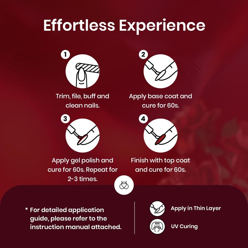 - Easy Application and Good Tenacity: This series of red gel nail polish set is long-lasting for 28+ days with a perfect shine under proper application - with base gel top coat throughout the full application process.