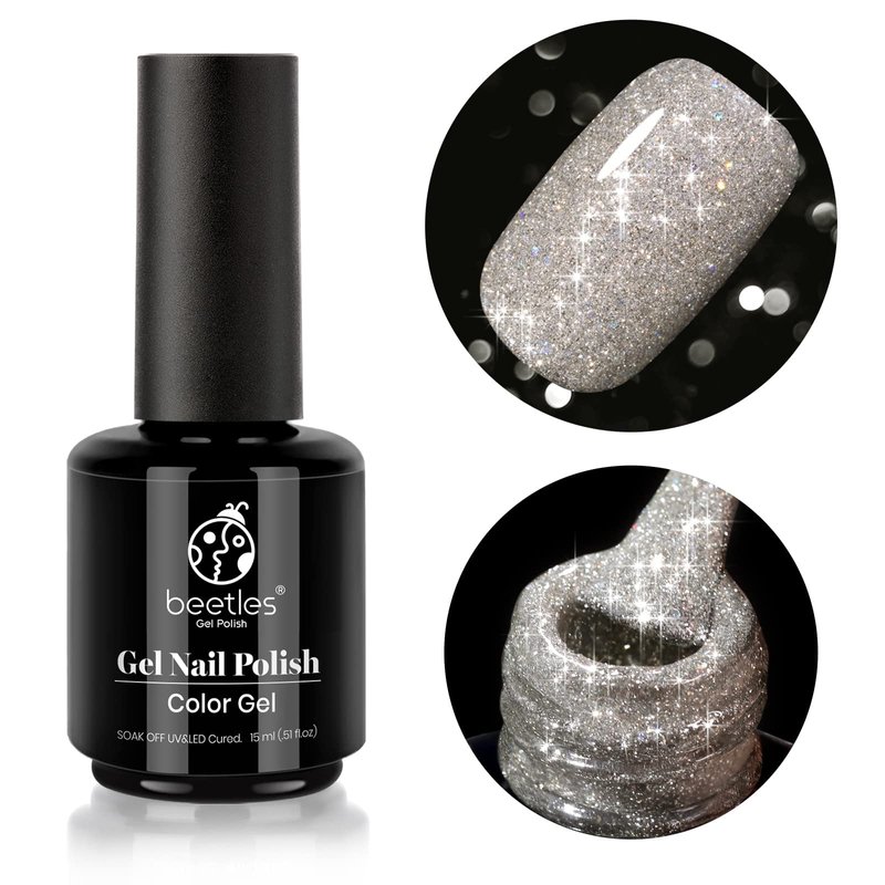 Beetles Reflective Gel Nail Polish 15ml Nail Gel Silver Glitter Nail Polish Soak Off Uv LED Nail Lamp Gel Polish Nail Art Manicure Salon DIY Home Diamond Gel 0.5Oz