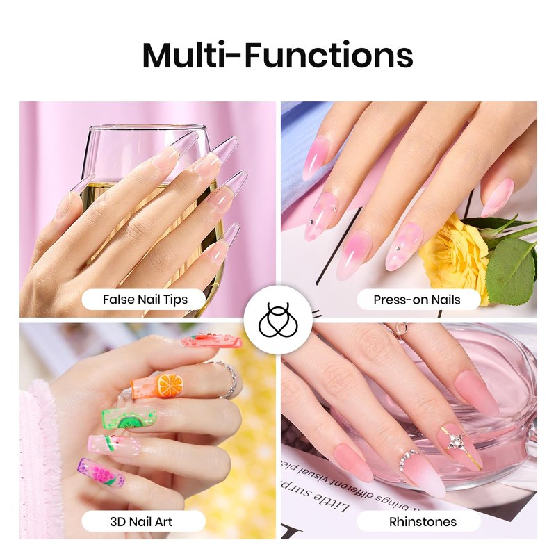 - 【WARM TIPS】The gel would become thicker because of low temperature, especially in winter. You can soak the whole jar in warm water to make it easy to apply. Due to the differences in the UV/LED nail lamp's power and the thickness of the nail glue, the curing time may vary slightly. For enhanced adhesion, you can extend the curing time if the nail tip is too thick to cure completely.