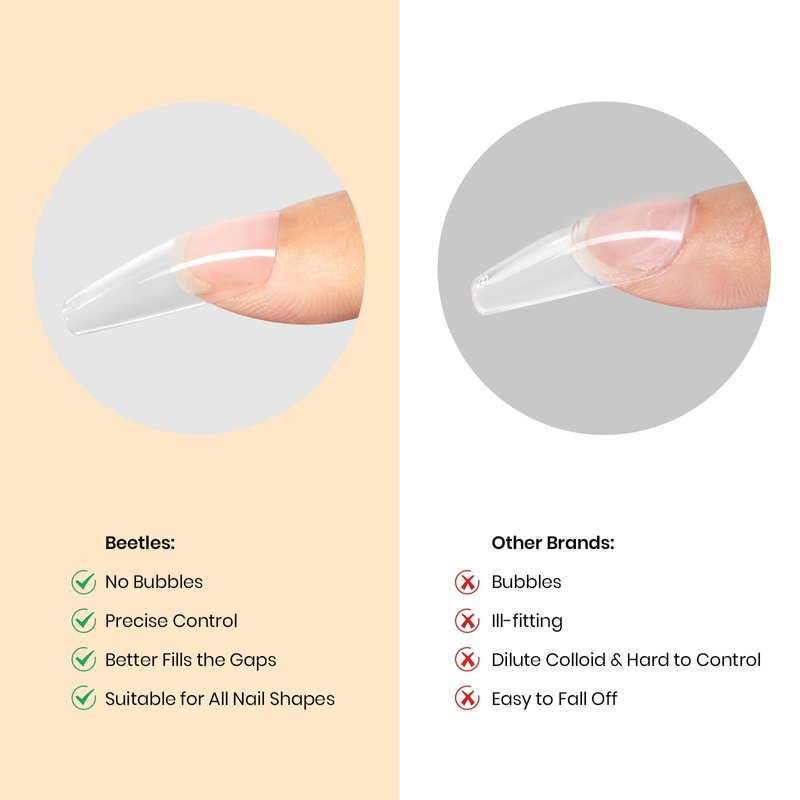 - 【Convenient, Fast, and Novice-friendly】Compared with traditional nail glue or adhesive, BEETLES SOLID NAIL GLUE GEL is less prone to bubbles and has a higher Operational error-tolerance for novice manicurists. Low flowability allows your whole hand to be cured under UV light without the assistance of the other hand.