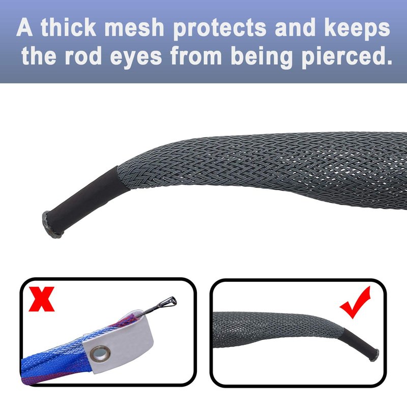 - 【Fishing Rod Protector Cover】Thick mesh to protect and keep rod eyes from poking through. A great way to prevent annoying tangles in your rod locker or vehicle while protecting your fishing line and rod from nicks and scratches.