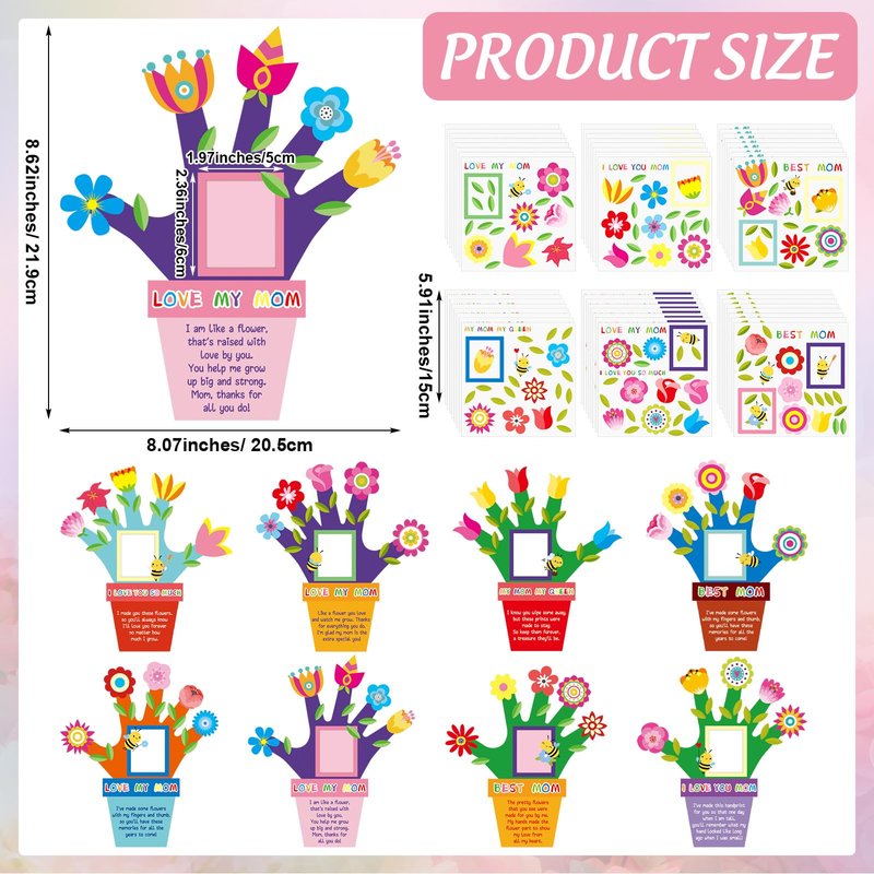 - Mother's Day Craft: you will receive 48 sets of Mother's Day picture frame craft kits, 8 styles, 6 pieces each, come with 48 stickers, 6 styles, 8 pieces each, rich quantities and styles for personalized photo frames can be made as a heartfelt gift for mom on Mother's Day