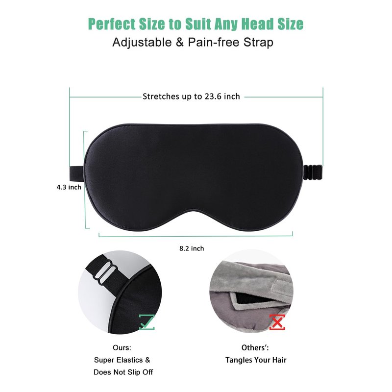 - Sleep Sound Anywhere & Anytime: Wear this incredibly lightweight, soft, comfortable sleep mask anywhere - in a bed, on a flight, on a long car ride, while camping - and enjoy uninterrupted, deep, relaxing sleep; This silk eye sleeping mask is perfect for Travel, Home, Flight, Train or anywhere where your sleep is bothered by light; Key Product Features