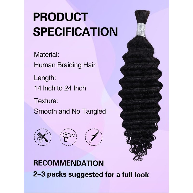 - Human Braiding Hair for Boho Braids Hair Advantage: Deep Wave Bulk Human Hair Bundles; Tight And Neat; No Tangle; No Shedding; No Smell; Can Be Change Style; Saving Time & Money; Easy To Manage; Can Keep Your Looking Everyday