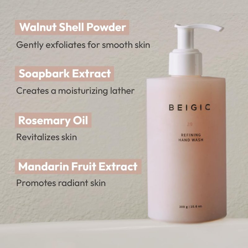 BEIGIC Refining Hand Wash | Vegan Hand Soap Foam w/Walnut Shell Powder, Soapbark Extract & Lavender Oil | Exfoliating Hand Soap Liquid | Gentle Hand Soap for Sensitive Skin (10.6 oz)