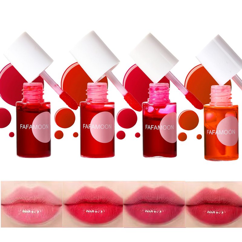 Bekoeen 4PCS Lip Stain,FAFAMOON Long Lasting Lip Gloss,Moisturizing Lip Gloss,Non Sticky Lip Stain Set,Non Sticky Lip and Cheek tint,Korean Lip Gloss,Natural Mini Liquid Water Tint