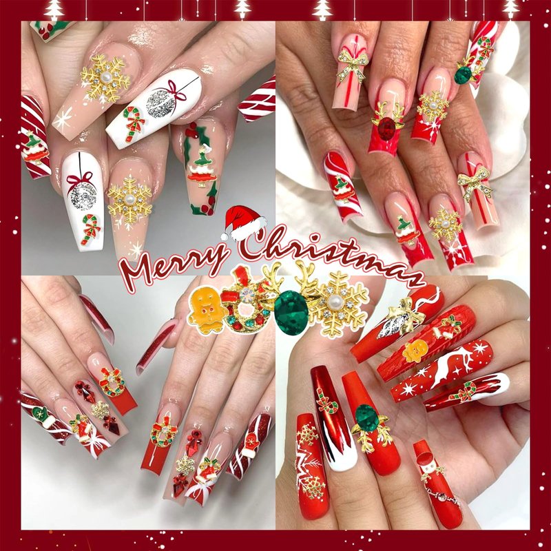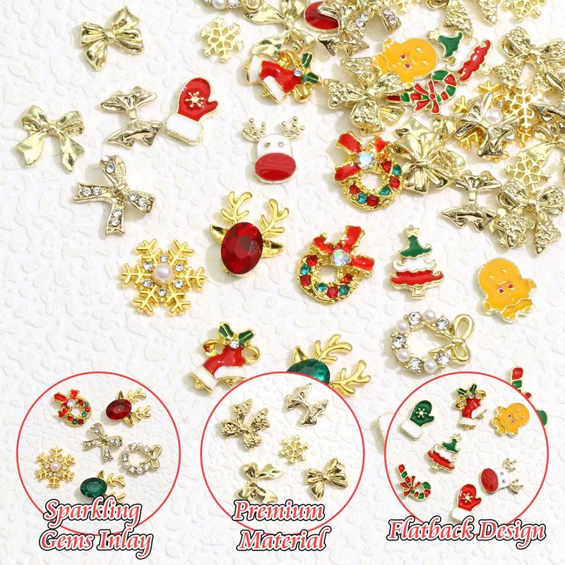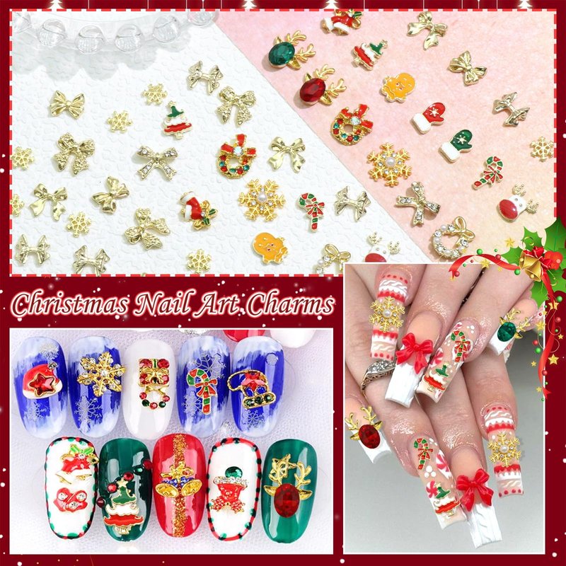 - Beautiful & Durable: These luxury Gold Nail Charms are made of premium alloy material, solid and durable, not easy to fade and broke. Christmas color designed charms and gems make your nails charming and eye-catching, adding your nails christmas spirit on that special day. These Nail Jewelry combine beauty and durability, allowing you to enjoy beautiful nail designs without worrying about the quality of your it!