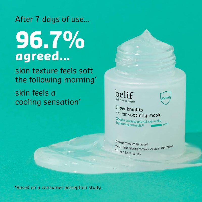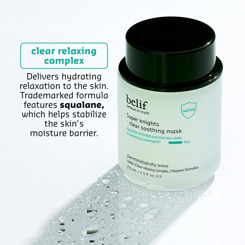 belif Super Knight Clear Soothing Mask, Overnight Hydrating Face Mask, Lightweight, Cooling & Antioxidant-Rich, Squalane, No Wash Off & No Sticky Residue, Korean Skin Care
