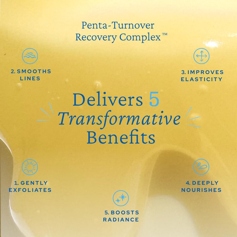- Penta-Turnover Recovery Complex: Consist of cerin, keratinase, PHA, Cedrol, Dual Peptides, Plant-Originated Collagen, Penta-Ceramides, Glycerin, Plant-Derived Squalene to target 5 major lip care concerns: exfoliation, lip wrinkles, hydration, elasticity, and radiance. Helps immediately soothe dry areas, provides moisture and glowing radiance.