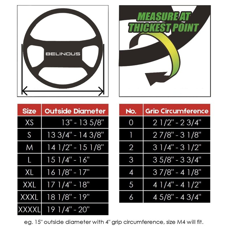 - Amazon's Most Complete Size Chart: Belinous universal steering wheel cover has more than 40 sizes and is suitable for 99% of models on the market.