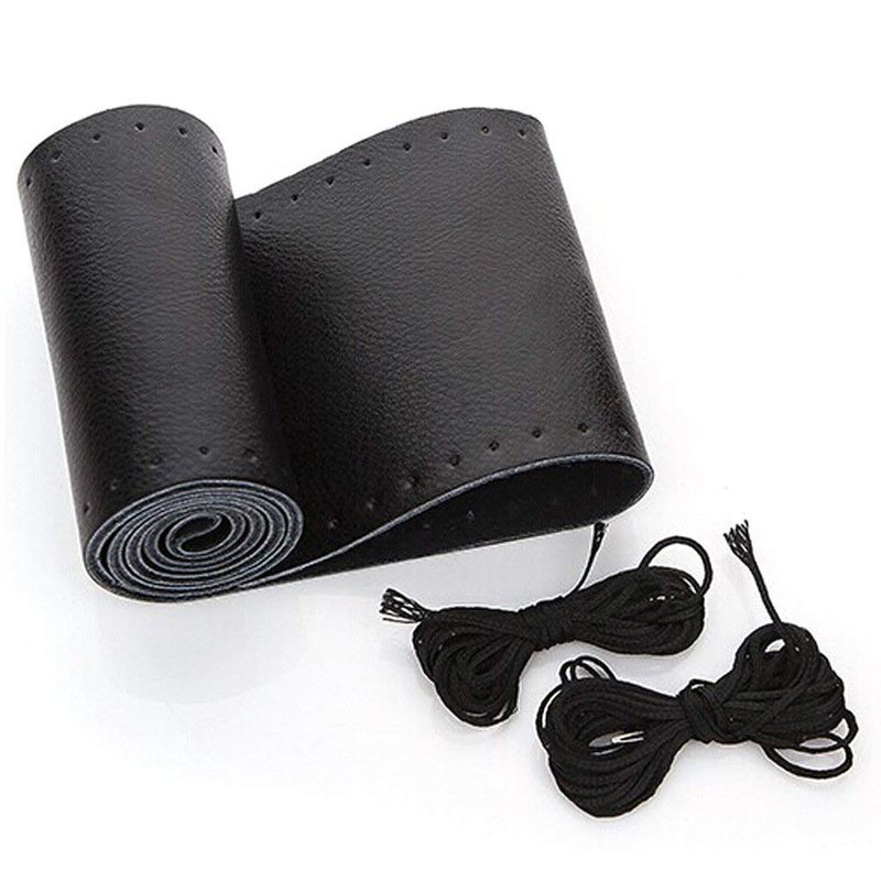 BELINOUS Leather Steering Wheel Cover Lace Up, Stitch On Wrap, Universal Fit 13-20 inch Car Truck SUV Pickup Boat, A Whole Piece of Cowhide, DIY Stitch w/Needle Thread (Size M4, Black)
