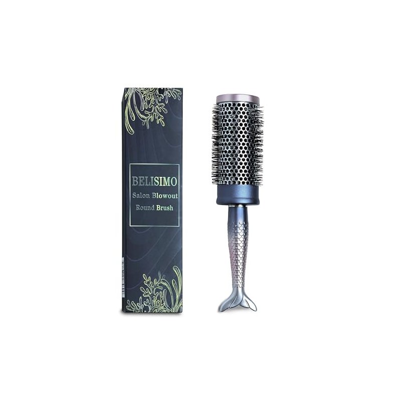 BELISIMO Unique Design Round Brush for Blow Drying, Professional 2.4 inch Round Barrel Brush With Fishtail Ergonomic Handle for Styling, Curling and Straightening. Pain-Free