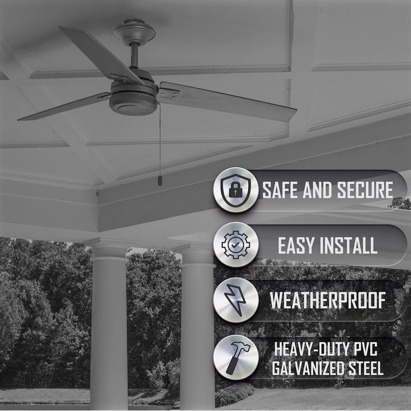 - UPGRADE HOME EXTERIORS: Our round outdoor electrical box for ceiling fans with lights can be mounted parallel, perpendicular, or 45 degrees from a joist. It's ideal for covered patios, porches, and pergolas.