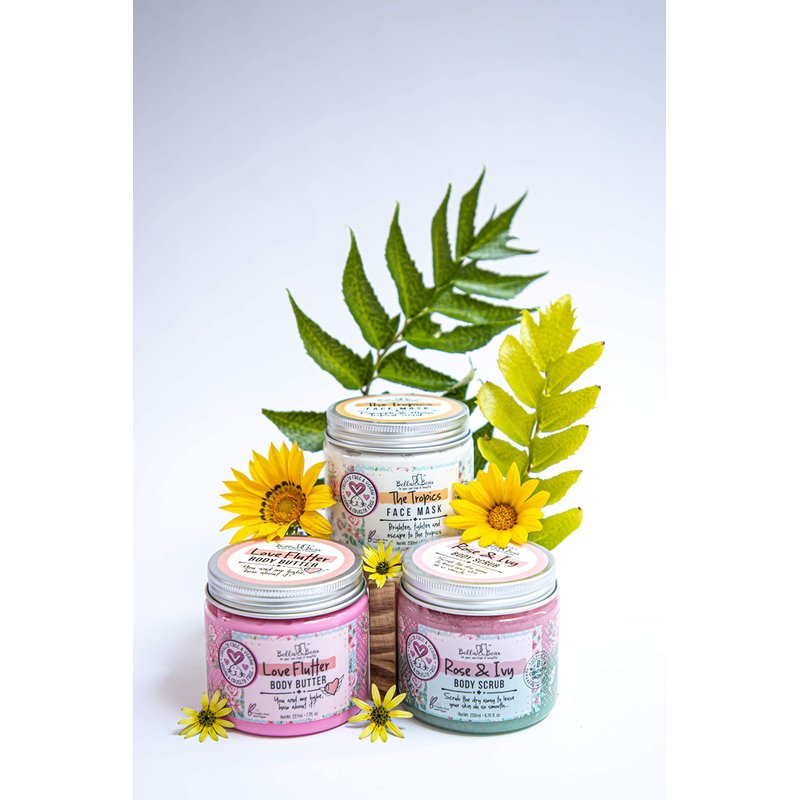Our body scrub contains plant-based glycerin. This ingredient is a humectant that attracts water, unlike oil which repels water. Essentially it pulls in water to the outer skin layer. Whilst oil will initially give that silky effect it doesn't penetrate the skin, Our body scrub will moisturize all day long. Skin-sational - body scrub exfoliator infused with the delicate scent of rose and ivy. Superhero strength - skin smoothing body polish perfect for dry dead skin - keratosis - scaly knees will reduce the appearance of cellulite prevent ingrown hair and hydrate for soft skin. At Bella & Bear, we don't believe in animal testing for the sake of beauty. So when you shop with us you're casting a vote for the kind of world you want to live in. All our products are 100% Vegan. Our jars come from recycled plastic and we're always looking at ways to be more socially responsible. All our products are great for gifting and make excellent gifts and stocking stuffers for women and teens for the christmas holiday
