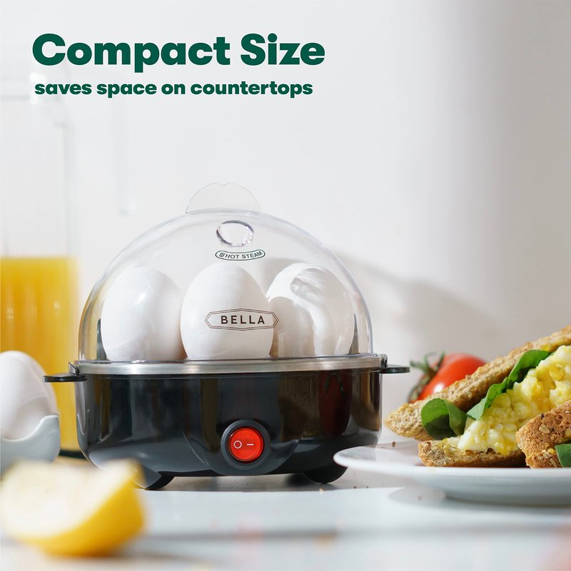 - GET CREATIVE WITH EGG COOKING - BELLA's unique rapid egg cooker can do so much more than just boil eggs! With a 7-slot capacity tray, it's the perfect appliance for any breakfast lover. Make omelets, boiled and poached eggs...the possibilities are endless