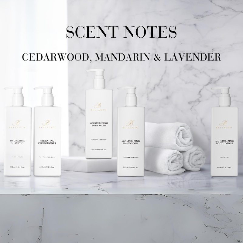 - Moisturizing Body Lotion - Create spa-like experiences with the Bellagio Body Lotion, crafted for those who revel in extraordinary indulgence. The nourishing shea butter embraces your skin in a soothing caress, leaving behind the delicate scent of lavender, green mandarin, and cedarwood. Embrace the pampering you deserve with this velvety lotion.
