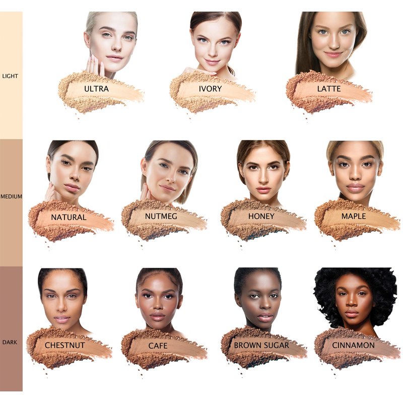 - Hide Wrinkles: High-quality mineral powder sits on top of your skin and doesn’t settle into your fine lines and wrinkles!
