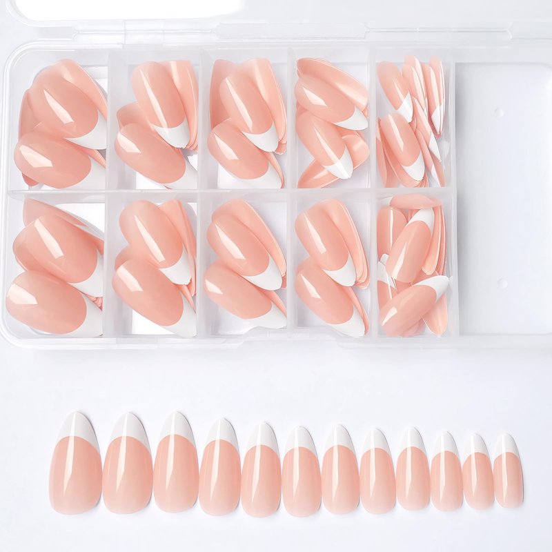 - Natural look press of nails, the cute false nails with perfect almond nails shaped, the top of are thicker design, bottom has a lighter edge and slight curve. it is can fits perfectly on your real nails. And the french nails are light and soft, It doesn't feel tight after wearing and doesn't burden our nail beds.