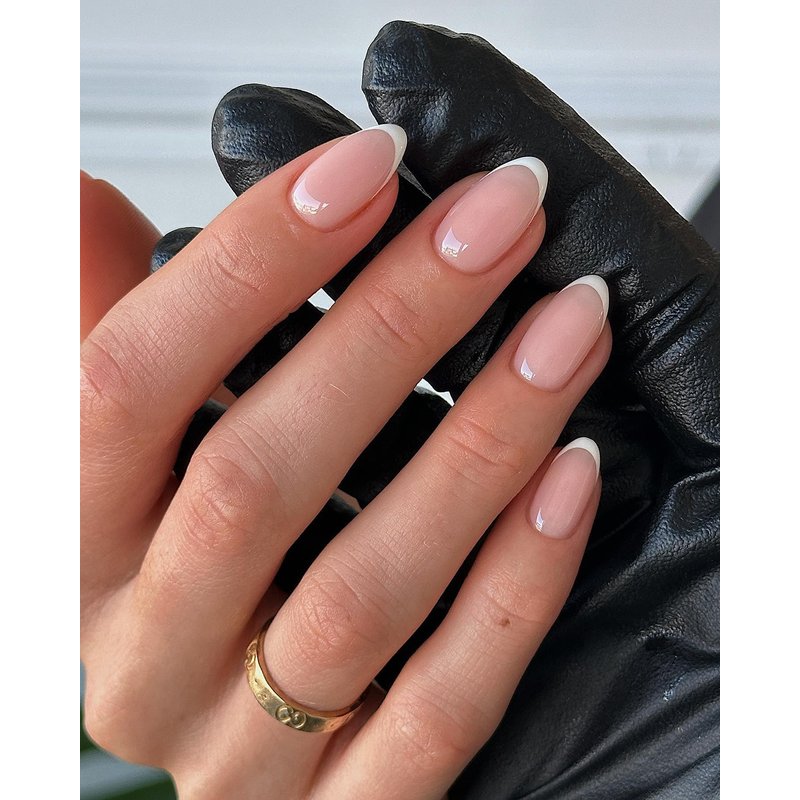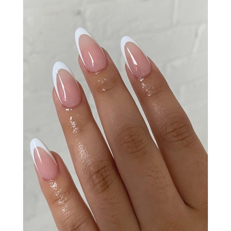 Style: glossy, full cover, simple/french tip/white french/almond nails