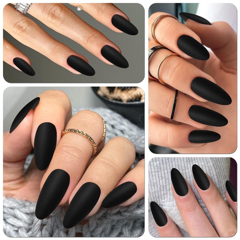 - Classic black nails, acrylic press on nails are elegant matte nails design, perfect almond shaped press nails, medium length will not affect daily use, such as eating, working,doing housework, etc.