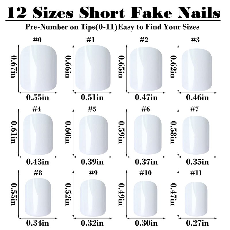 - Various sizes: The glossy full cover press on nails contains 12 different sizes, especially friendly for small nail beds. The nails are numbered inside (0-11), so even if they are mixed together you can easily find the right size for every fignernail. Convenient and quick.