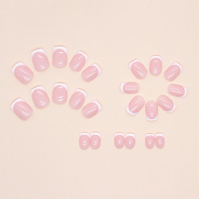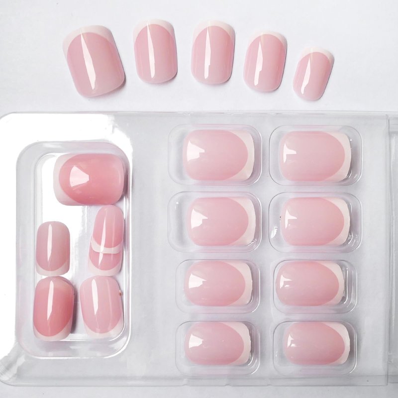 - French tip press on nails kit: content 24pcs short square press on nails nude pink french nails designs for women girls teens diy nails. 1pc strong nail glue, 1pcs nail adhesive tabs. 1pc alcohol pads. 1 nail file and 1 wooden stick. No need to buy additional materials, you can achieve the nail salon effect at home. Perfect for quickly nail art manicure and save your money and time.