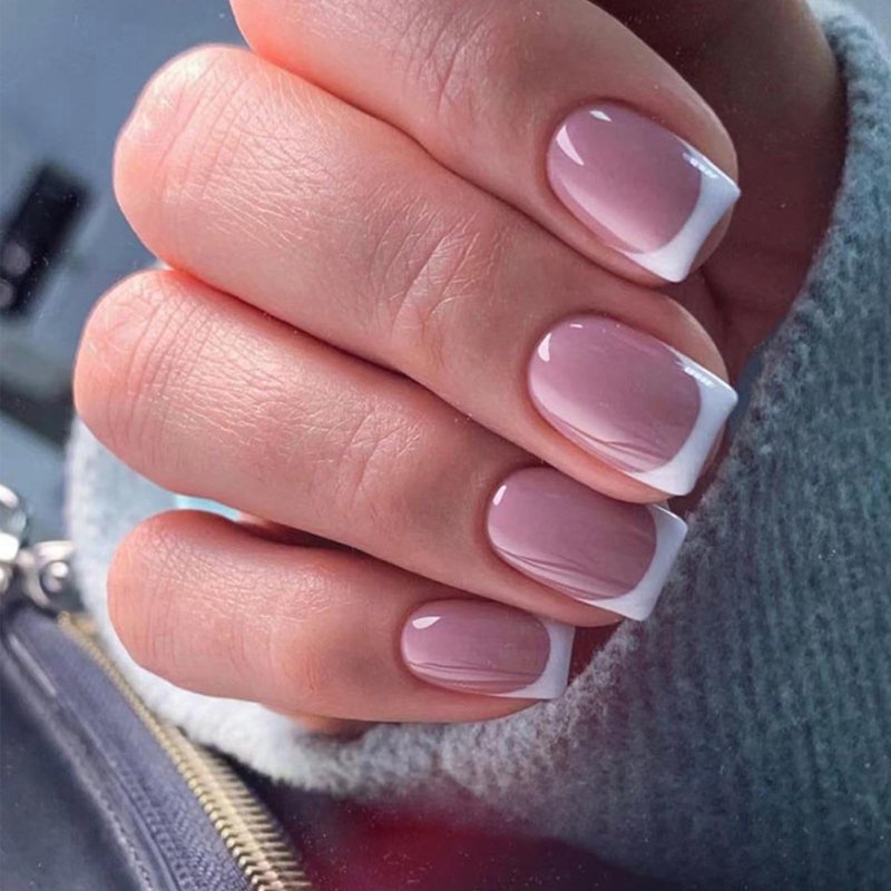 Style: Glossy, full cover, french, smiple, white french nails