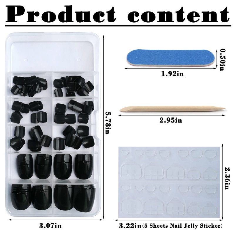 - Short press on toenails kit: contains 120pcs glossy short square press on toes nails, 5 jelly adhesive sticker, 1 nail file and 1 wooden stick. No need to buy additional materials, you can achieve DIY nail salon effect at home, saving your time and money.