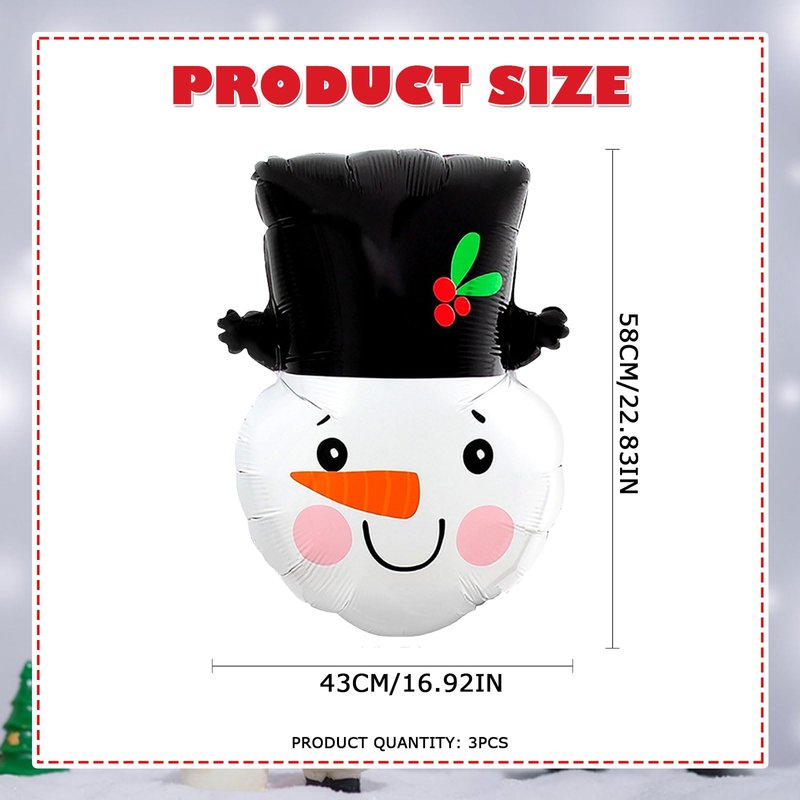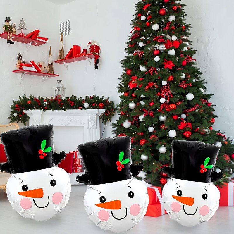 BELSITA 3pcs Christmas Balloons Snowman Aluminum Foil Balloons Black Hat Big Balloons Cute Cartoon Balloon Arch Kit for Christmas Party Supplies Accessories