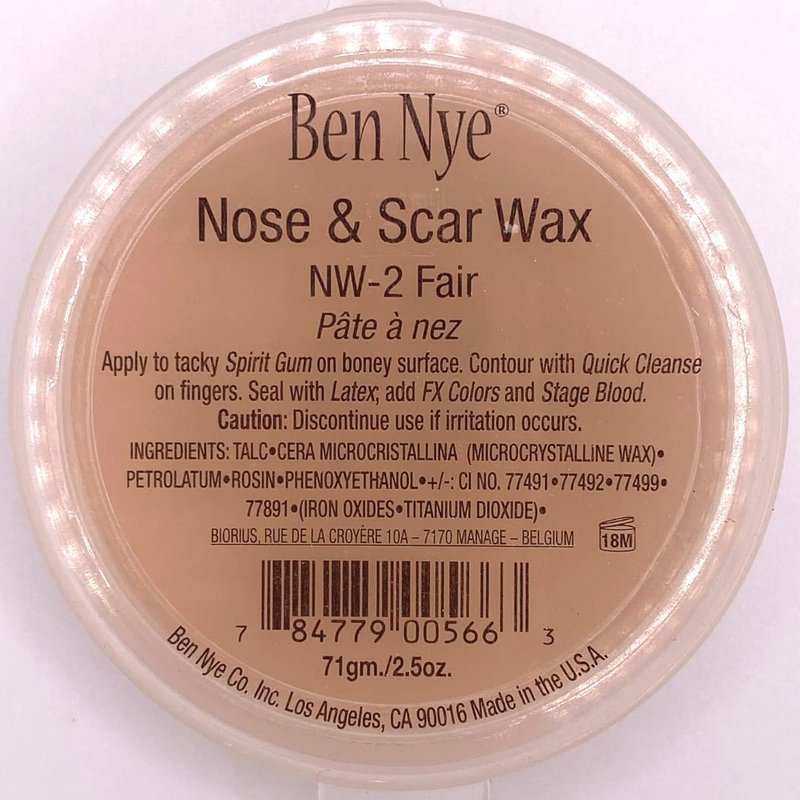 Ben Nye's Nose & Scar Wax changes the appearance of real skin to imitate all sorts of fleshly distortions! Feign a broken nose, a witch's chin or bullet holes with this moldable yet firm medium. Wax is translucent to emulate real skin!