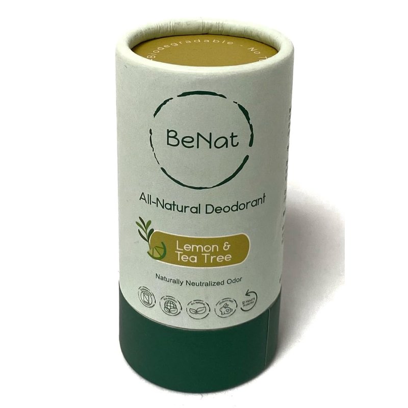 BeNat All Natural Deodorant Plastic Free For Women & Men Aluminum Free, Gluten Free & Cruelty Free 24 Hour Long Lasting Protection Zero Waste Eco Friendly Lemon & Tea Tree 3 oz.