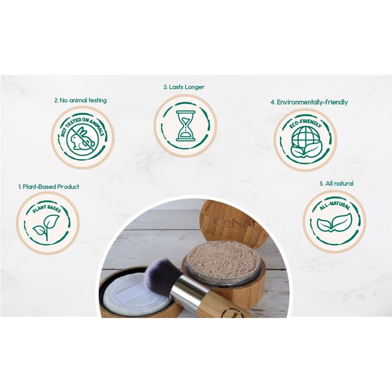 BeNat. Translucent Loose Powder. Vegan. All-Natural Translucent Soft-Matte Finish. Artisanal, Crafted with Fewer, All-Natural Ingredients. Packed in a Beautiful Bamboo, Eco-Friendly Case.