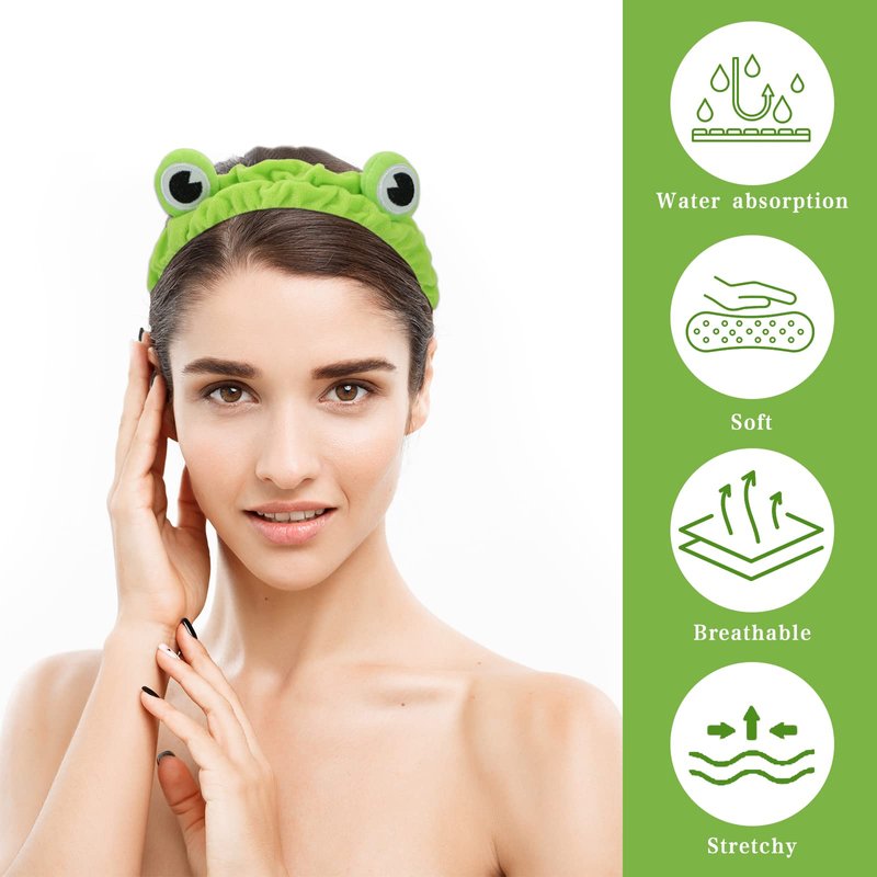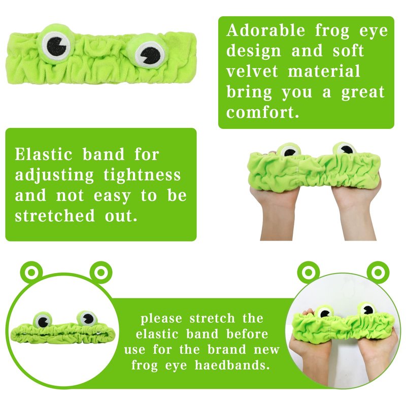 - Cute Design: featuring a green frog with large eyes, lovely cartoon appearance makes you look sweet and cute, when you wash your face with the frog hairband, it will add more fun, making your life more colorful and interesting