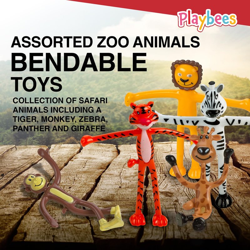 Bendable Zoo Animal Figures Toys - 12 Pack - Durable Plastic Jungle Animals Figures - Engaging & Bendable Rainforest Creature Toys - Educational Fun for Kids and Stress Relief Solution